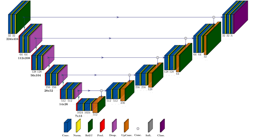 The HSI-Drive segmentation models are CNN (convolutional neural networks) encoder-decoder types with a U-Net structure (Fig. 3).