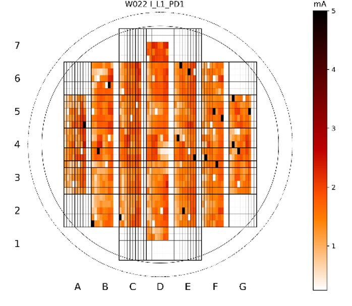 En esta etapa utilizamos un proceso de análisis automatizado que genera un mapa de chips funcionales en cada oblea, diferenciando de forma clara cuáles están listos para integración y cuáles quedan fuera de rango. Este enfoque nos permite garantizar que, ya desde el inicio de la cadena de producción, solo avanzan aquellos dispositivos capaces de ofrecer el nivel de seguridad esperado.