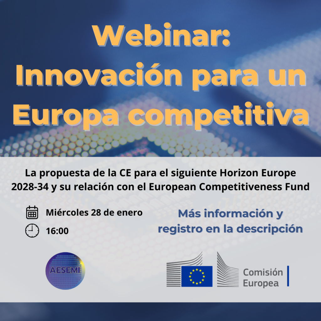 Desde AESEMI te invitamos a nuestro próximo webinar organizado junto a la Representación de la Comisión Europea en España, que tendrá lugar el próximo miércoles 28 de enero a las 16:00, en el que abordaremos un tema clave para el futuro de la innovación y la competitividad europea: “Innovación para una Europa competitiva”.